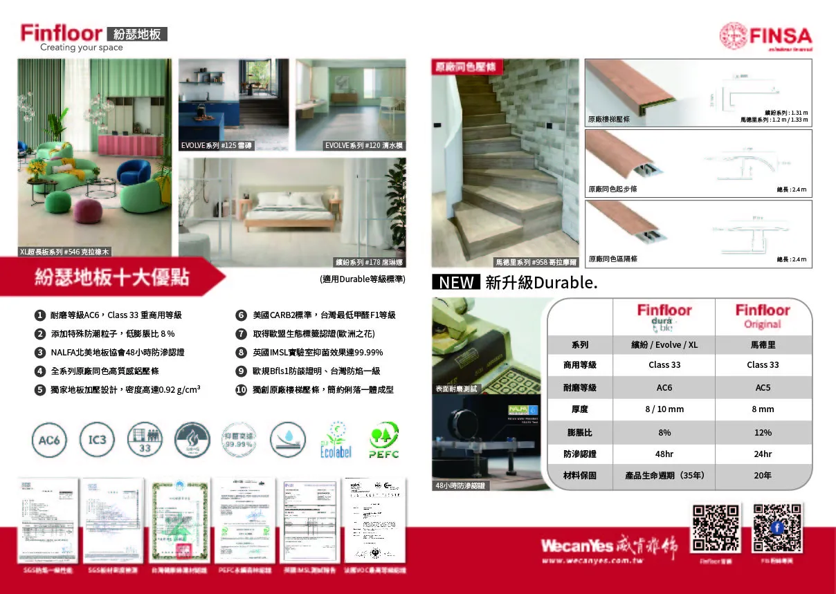 - 追求更高規格:FINfloor紛瑟為FINSA集團頂規的地板產品。